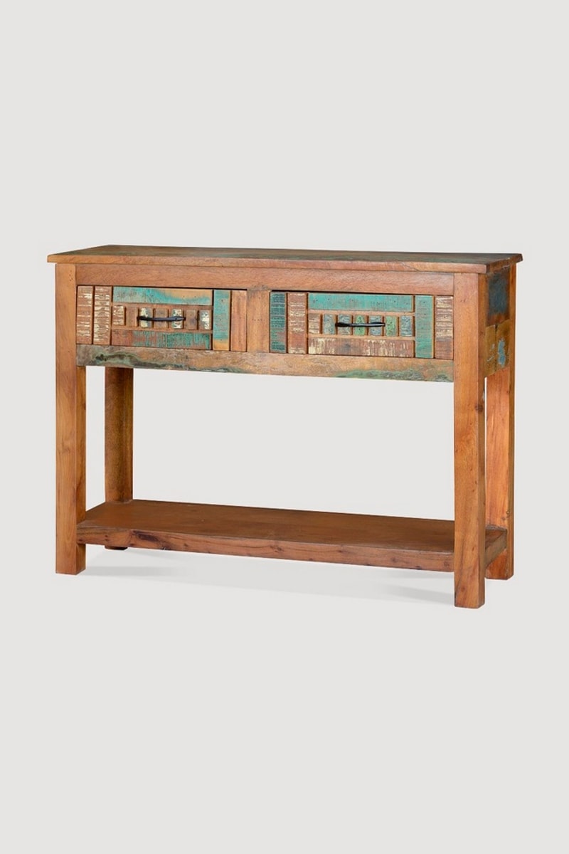Console 2 tiroirs - Multicolore - Structure en bois recyclé - 106 x 76 x 33 cm
