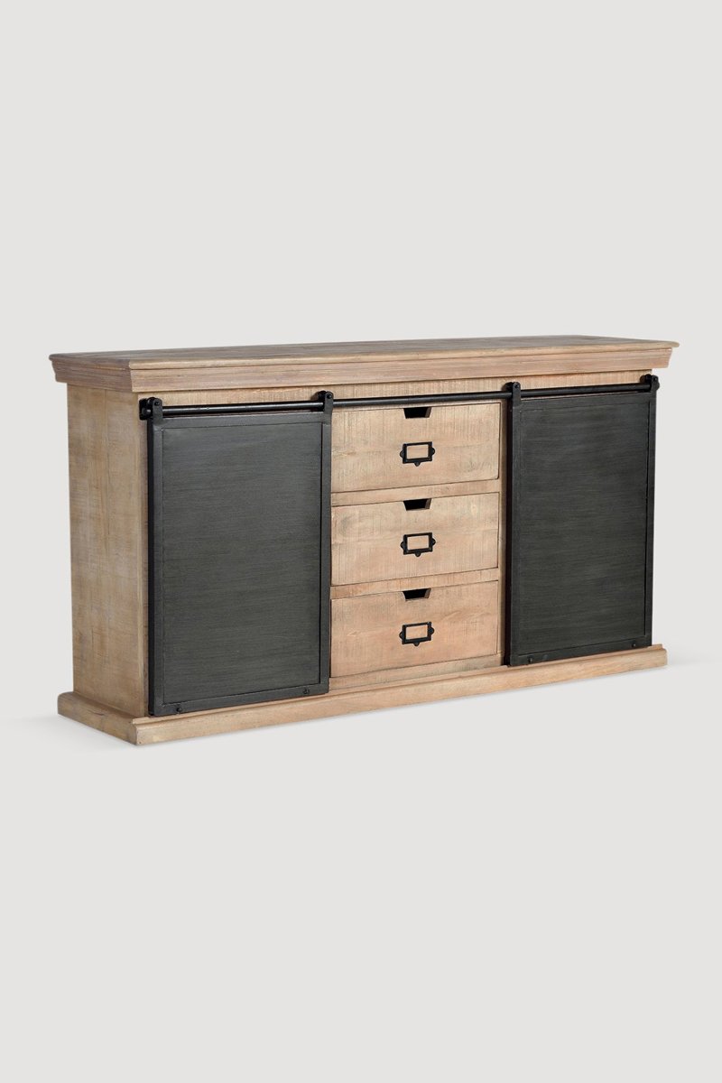 Buffet 2 portes - Naturel et noir - 160 x 40 x 85 cm