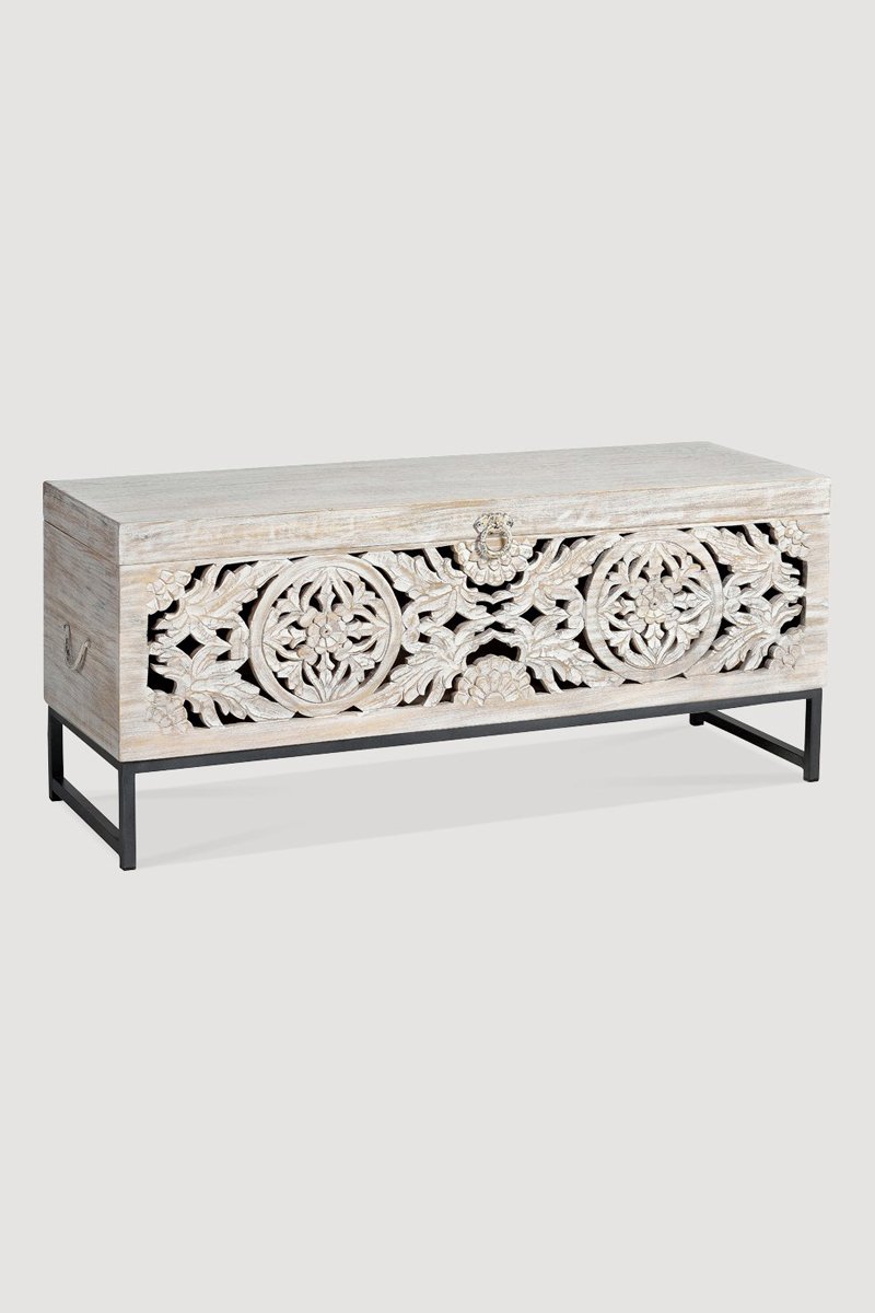 Coffre - Blanc - Structure en bois de manguier - 116 x 50 x 40 cm