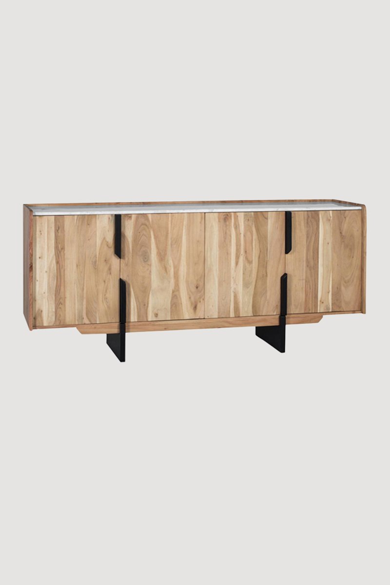 Buffet 4 portes en acacia massif et marbre - 180 x 78 x 40 cm