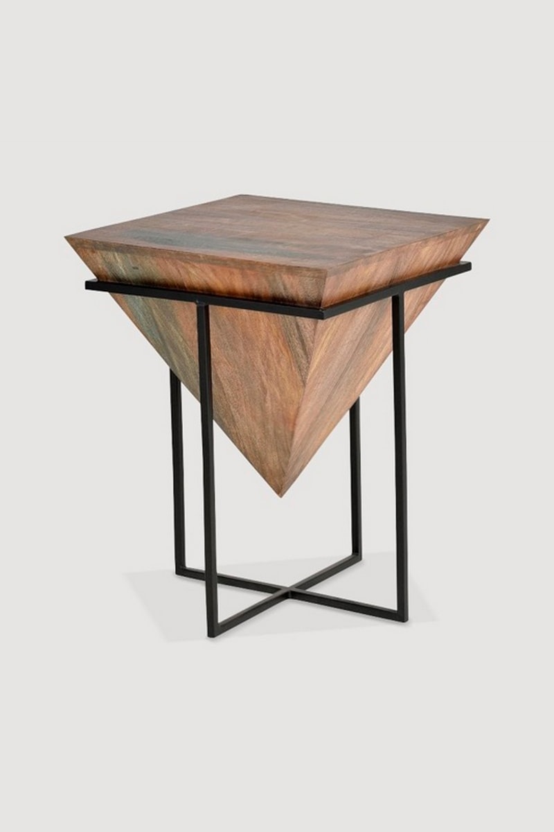 Table basse - Naturel et noir - Plateau en bois de manguier - 50 x 63 x 50 cm
