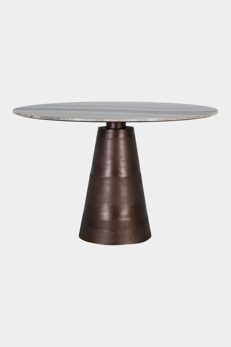 Table à manger - Gris et marron - Plateau en marbre - 120 x 76 x 120 cm