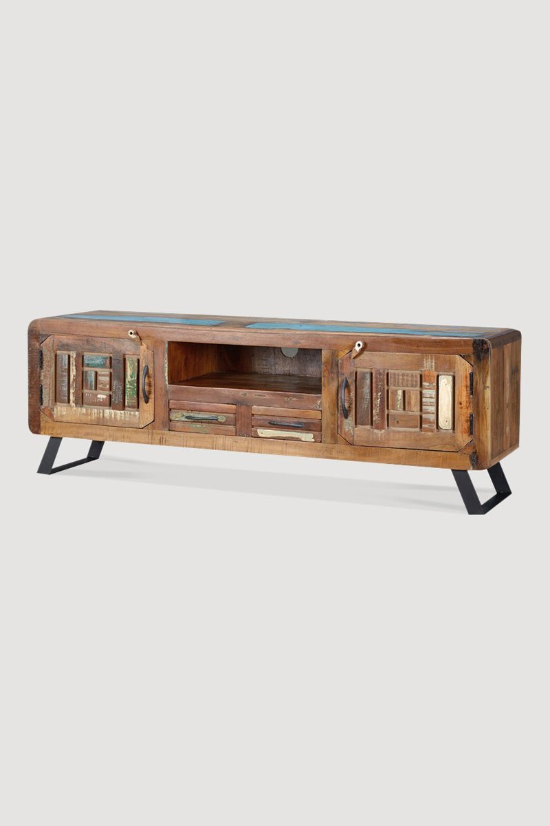 Meuble TV 2 portes - Naturel - Structure en bois recyclé - 160 x 54 x 40 cm