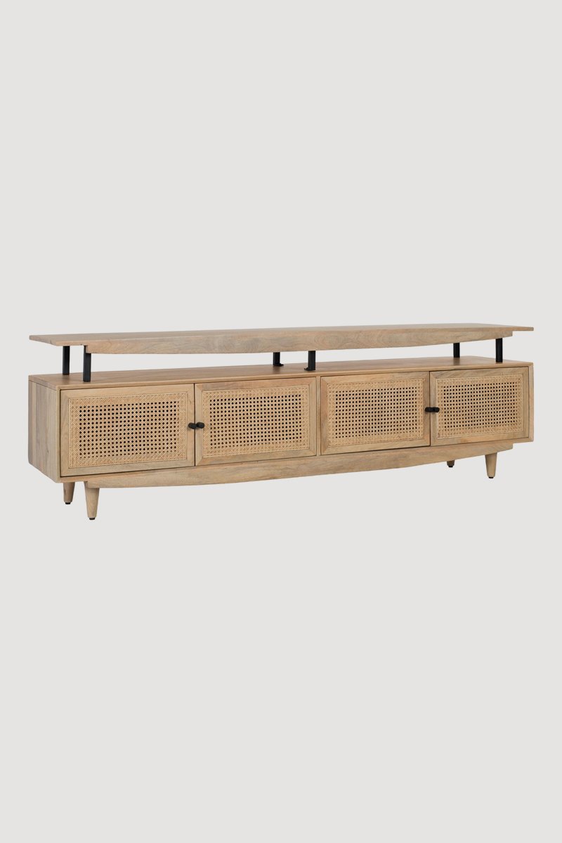 Meuble TV 4 portes en manguier et treillis en bois - 180 x 58 x 43 cm
