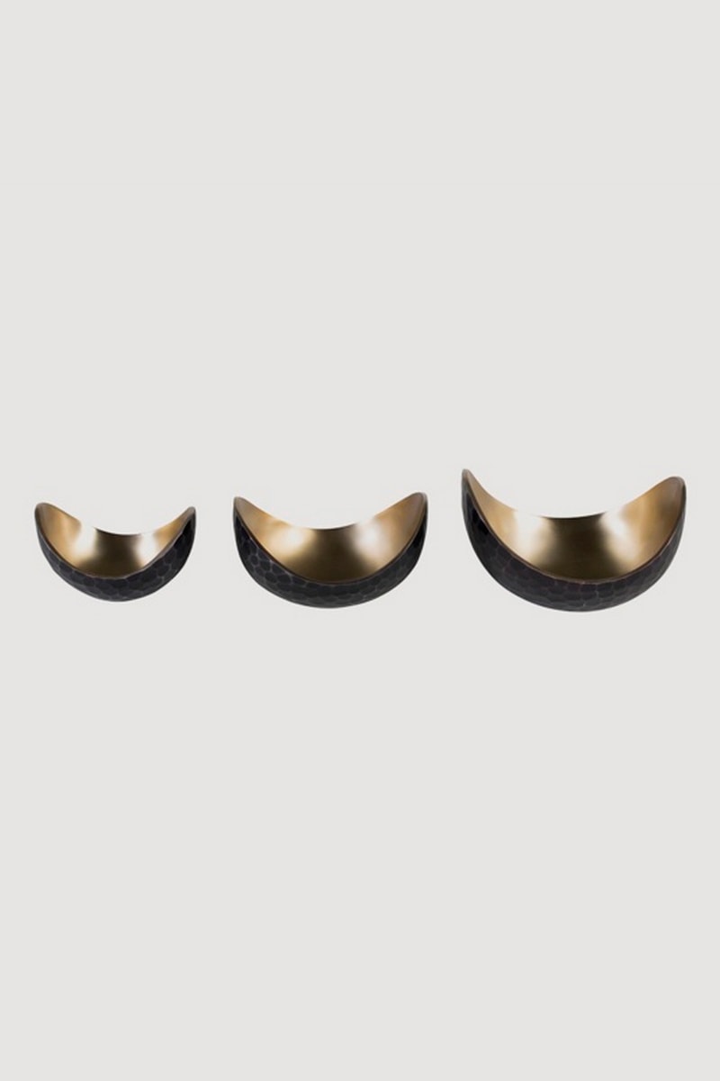 3 bols décoratifs - 17/14/12 cm - Noir et doré