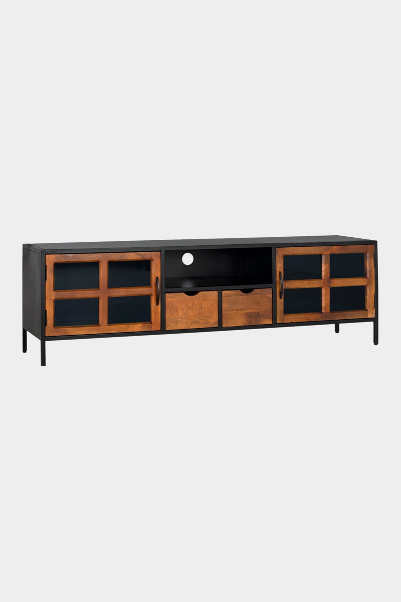 Meuble TV 2 portes et 2 tiroirs - Naturel et noir