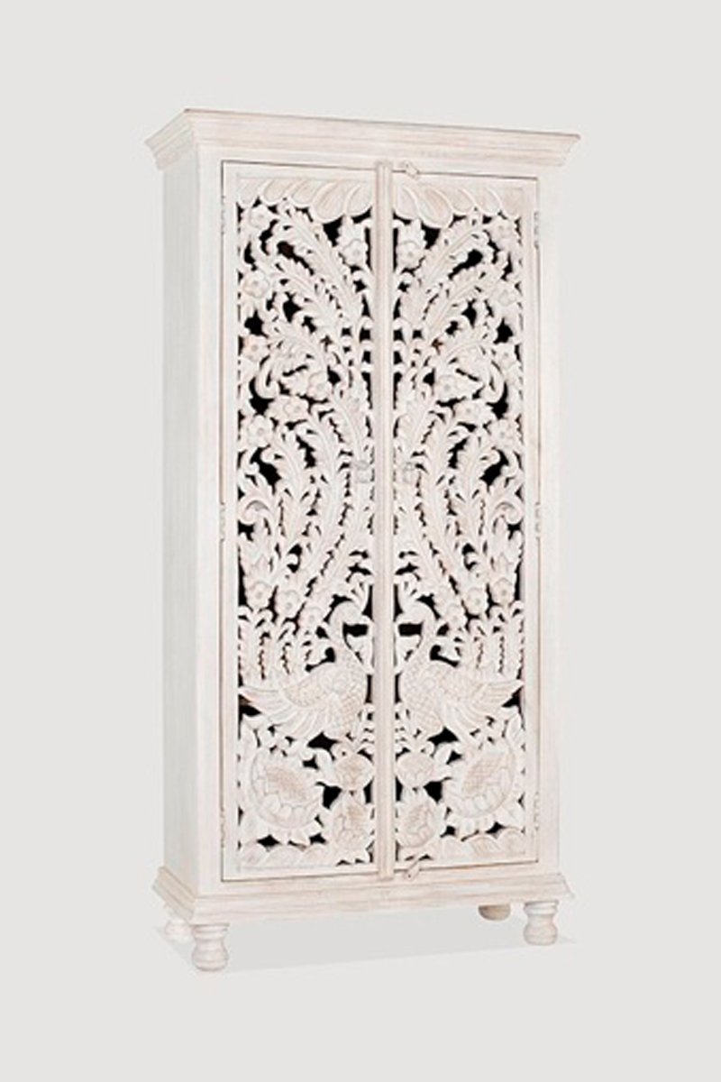 Armoire 2 portes - Blanc - Bois de manguier - 90 x 180 x 40 cm