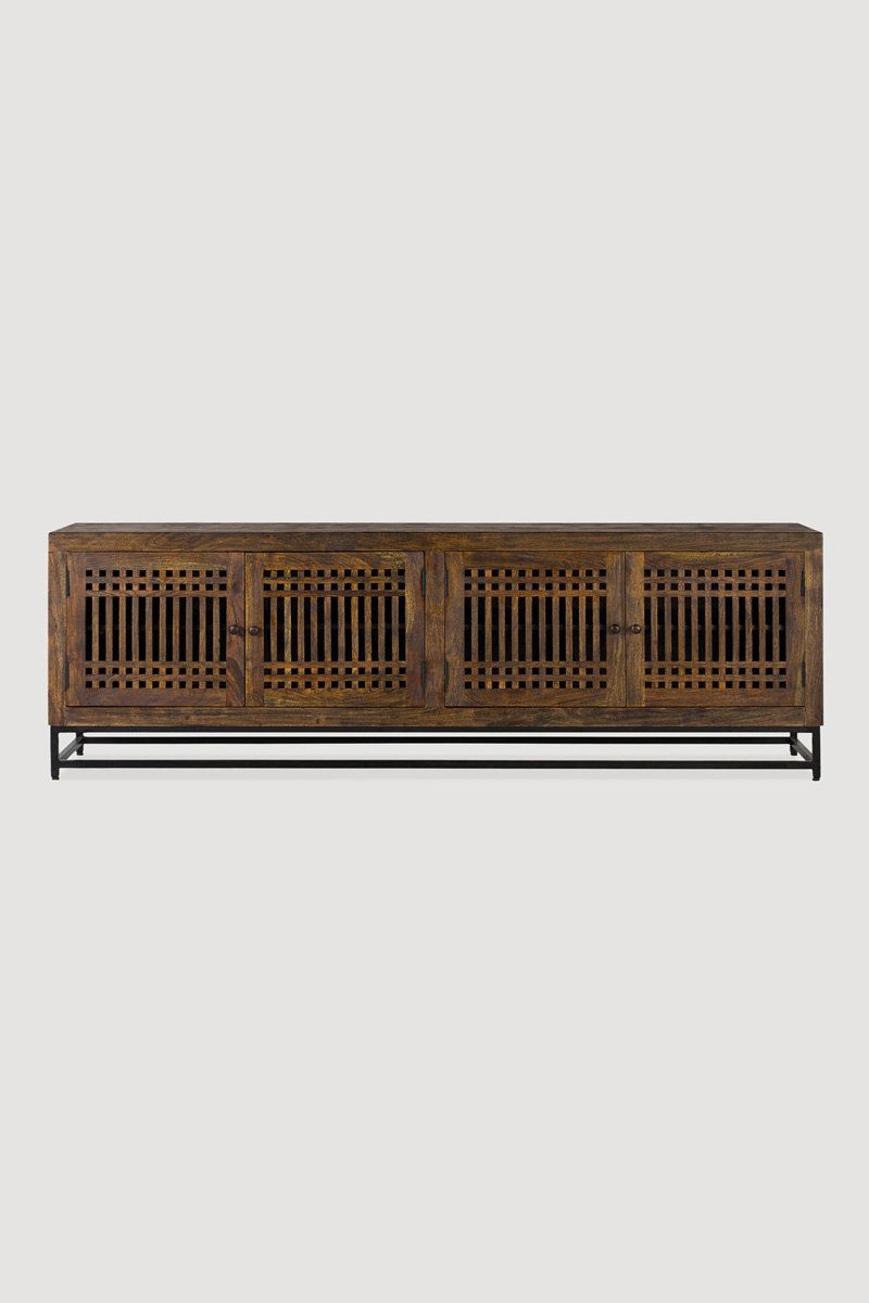 Meuble TV 4 portes en acacia - 200 x 65 x 45 cm