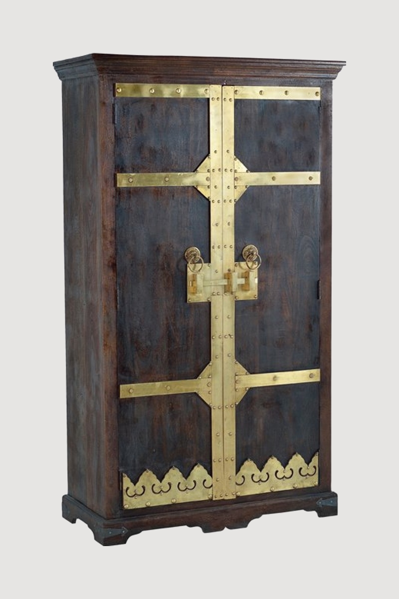 Armoire 2 portes - Naturel et doré - Structure en bois de manguier - 110 x 50 x 190 cm