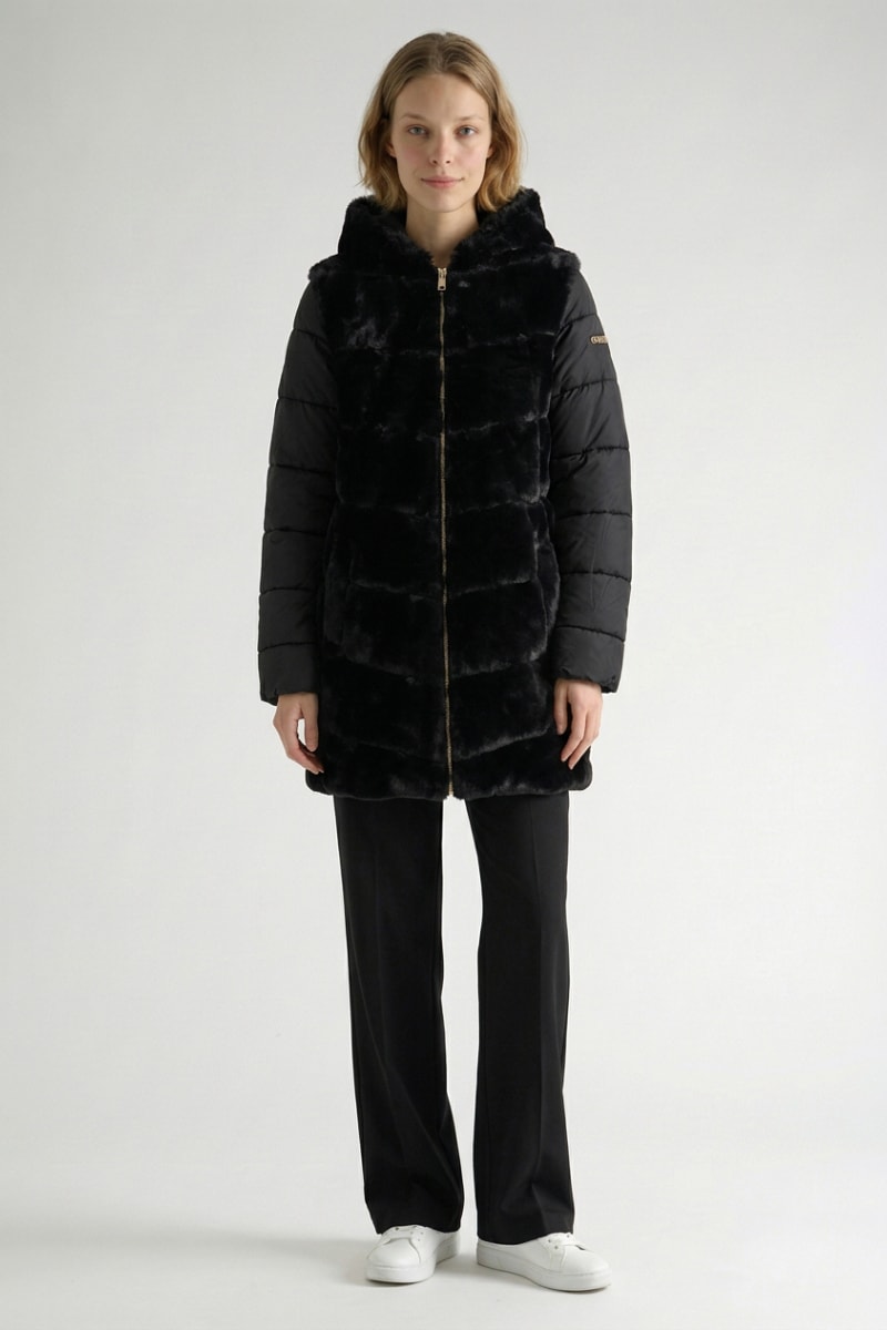 Empiècements en fourrure synthétique devant et au dos.