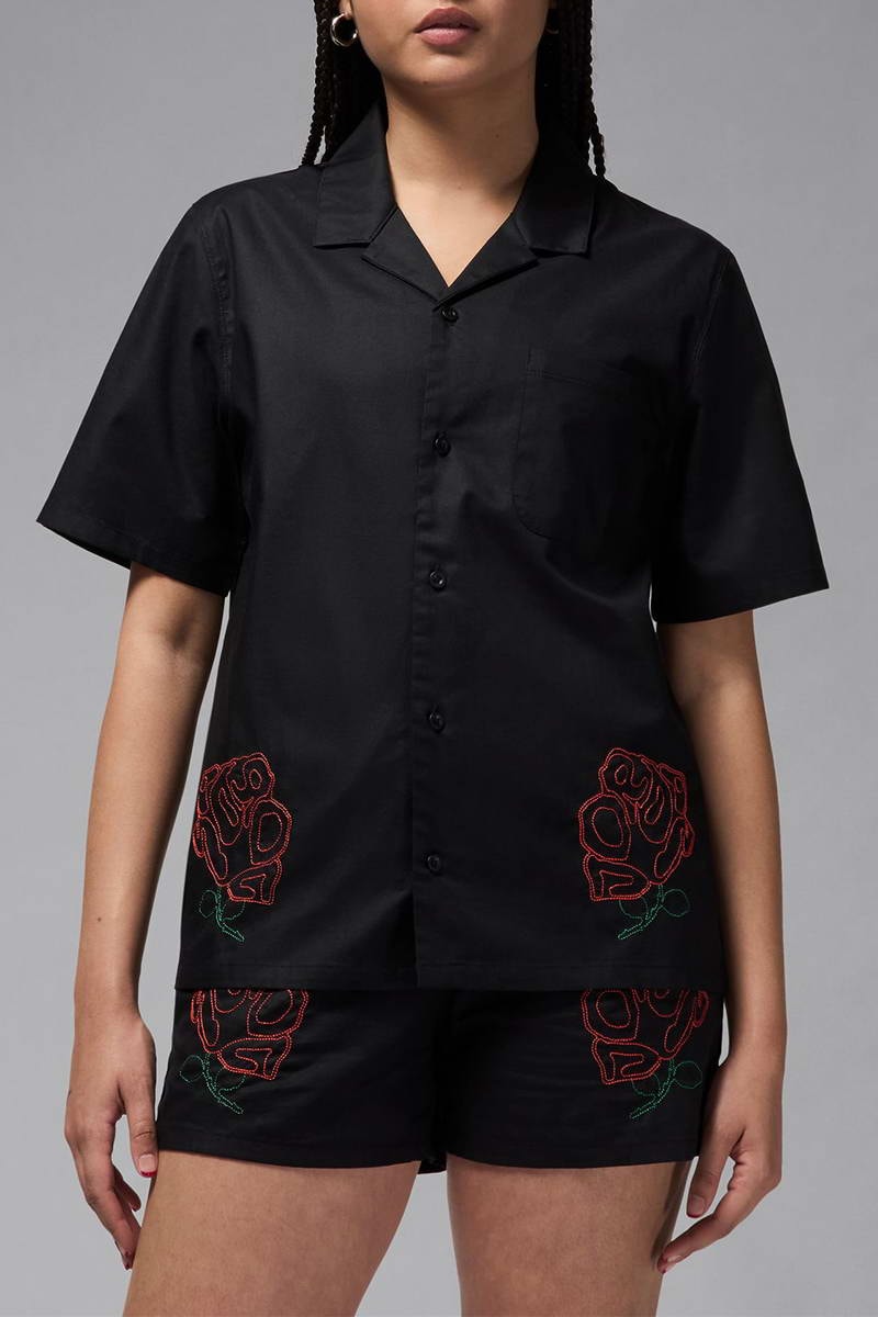 Motifs fleurs brodés devant.