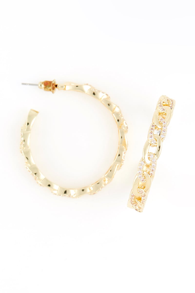 Demi-créoles dorées à l'or fin jaune serties de cristaux.
