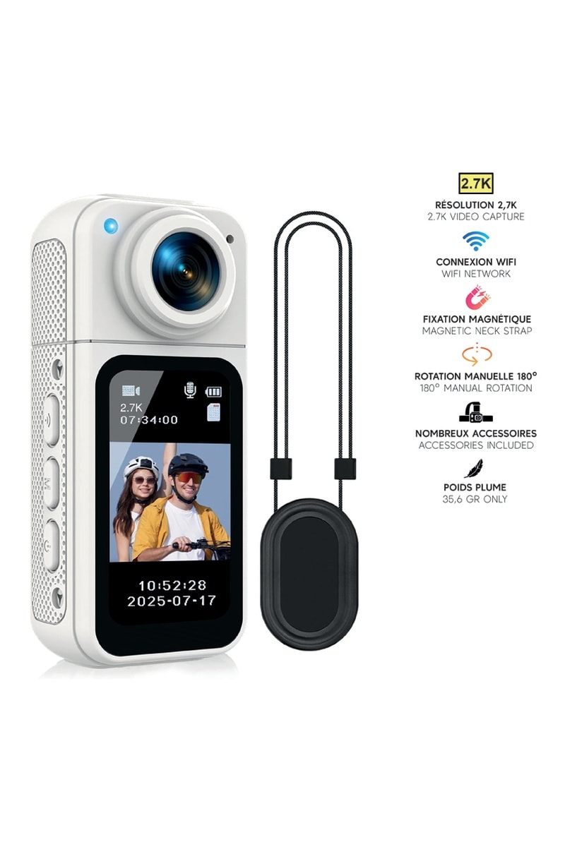 - Caméra corporelle 2,7K Wifi 180° - Modèle Magnetix