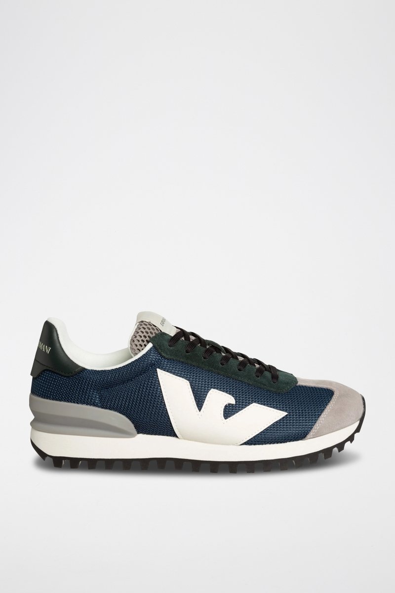 Sneakers en cuir Emporio Armani - Bleu marine et gris - EA7