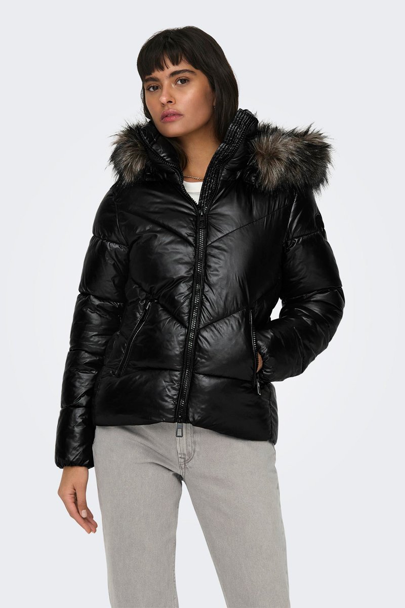Doudoune à capuche avec fourrure synthétique.