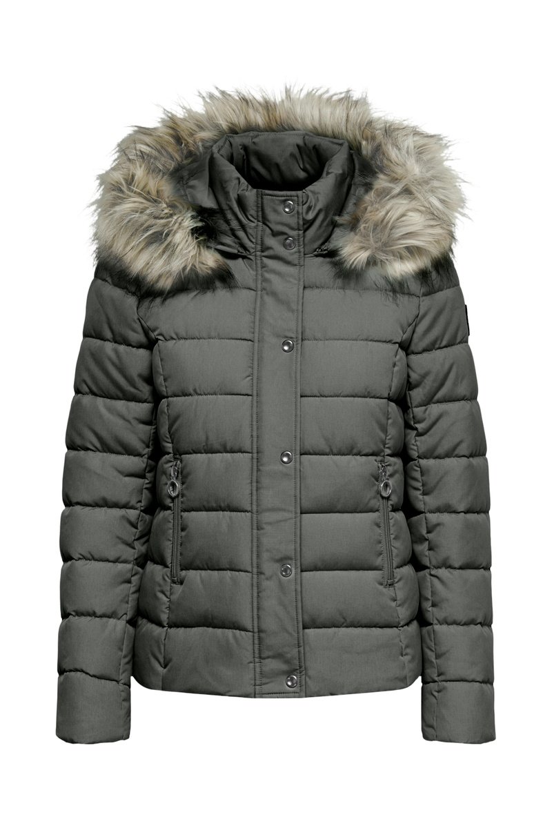 Doudoune à capuche avec fourrure synthétique.