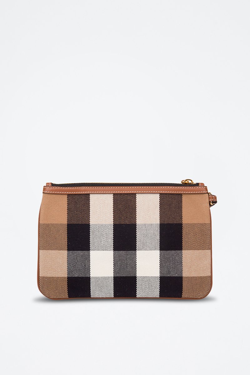 Pochette en cuir New Peyton Check - Taupe