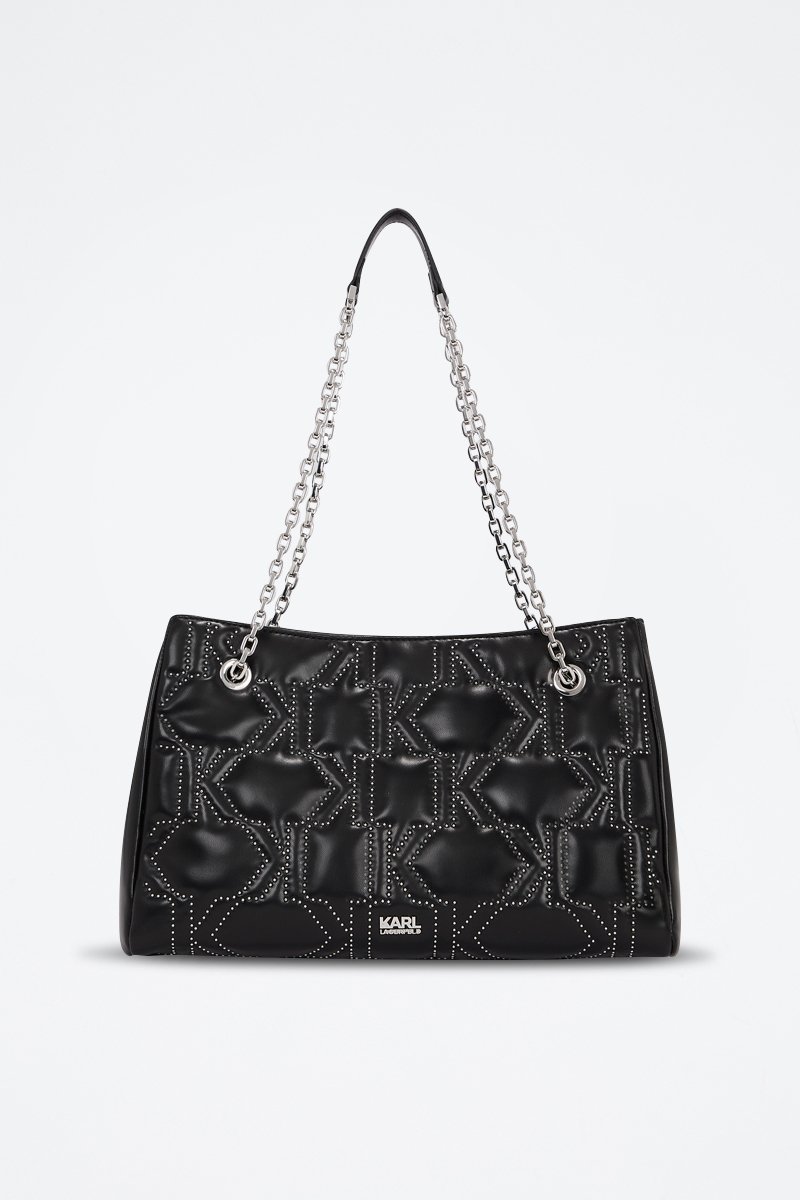 Effet matelassé, logo et empiècements métalliques devant et au dos.