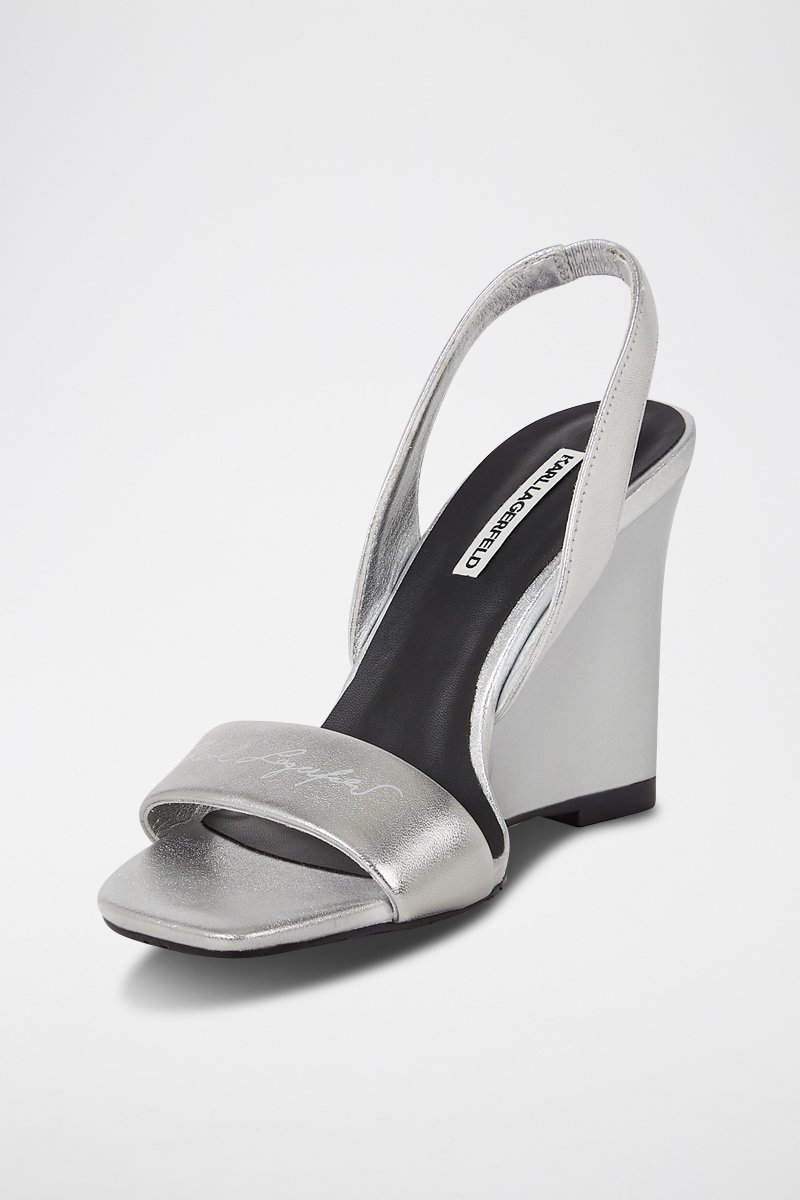 Sandales compensées en cuir - Argenté