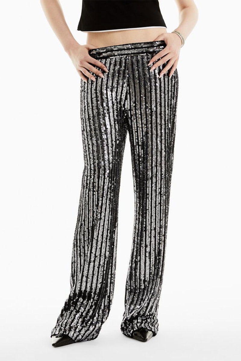 Taille élastique. Motifs à rayures à sequins.