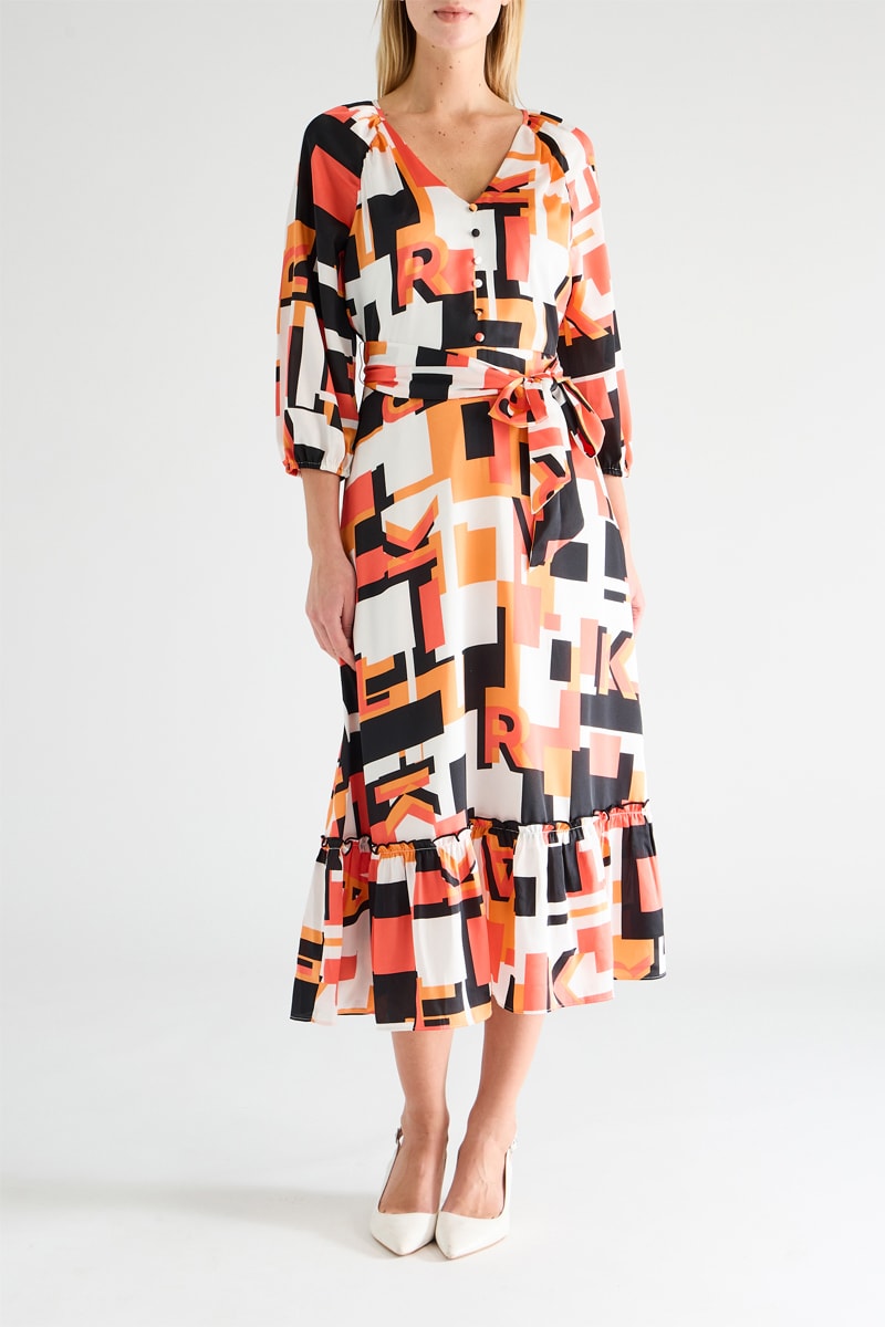 Robe midi - Orange et noir
