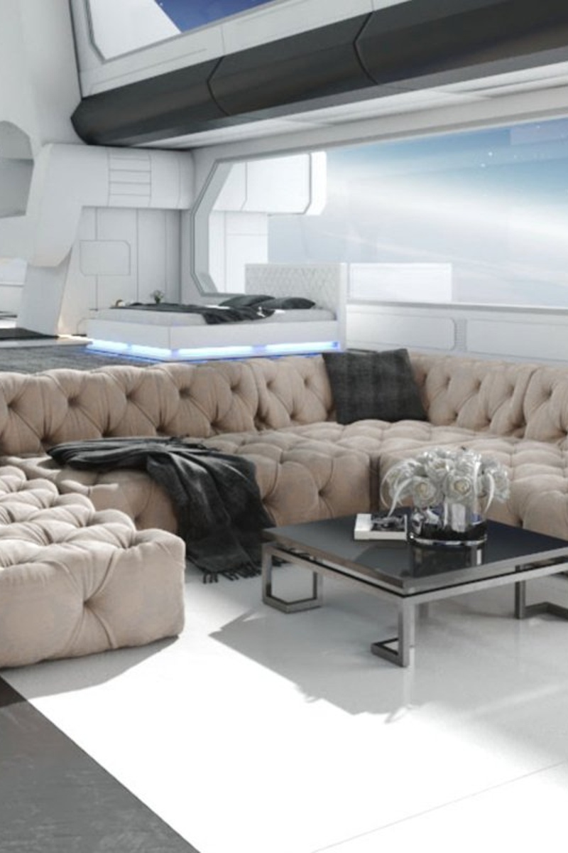 Canapé d'angle gauche panoramique Venus - Beige foncé