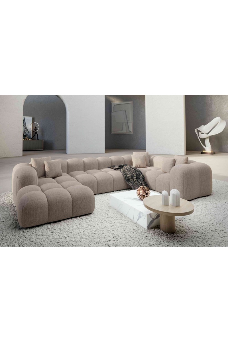 Canapé d'angle droit panoramique Nuvola - Beige - 7 places - Tissu structurel