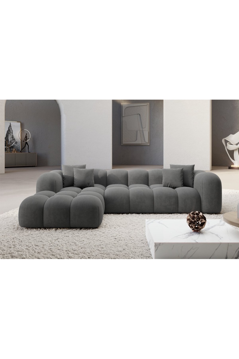 Canapé d'angle gauche Nuvola - Gris foncé - 5 places - Tissu toucher velours
