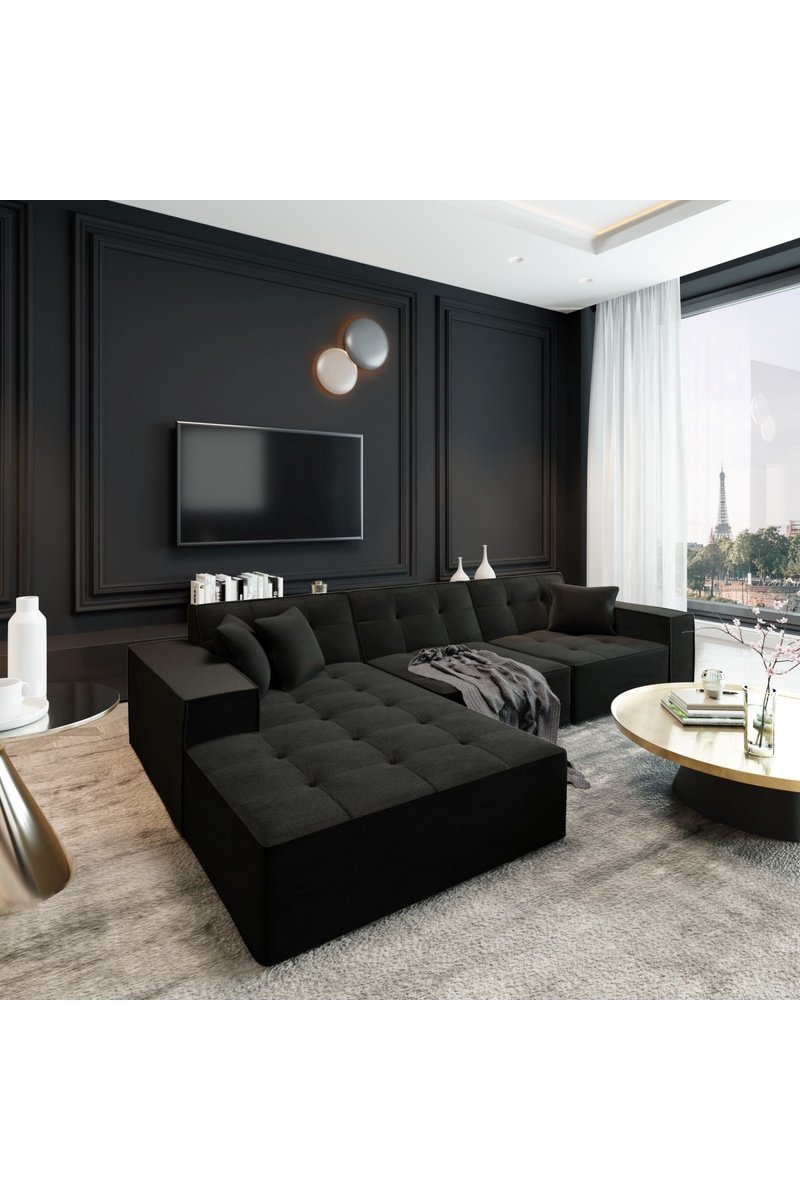 Canapé d’angle gauche Atlantis - Noir - 5 places - En polyester
