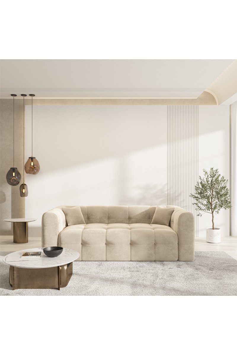 Canapé Baloo - Crème - 3 places - En tissu velours