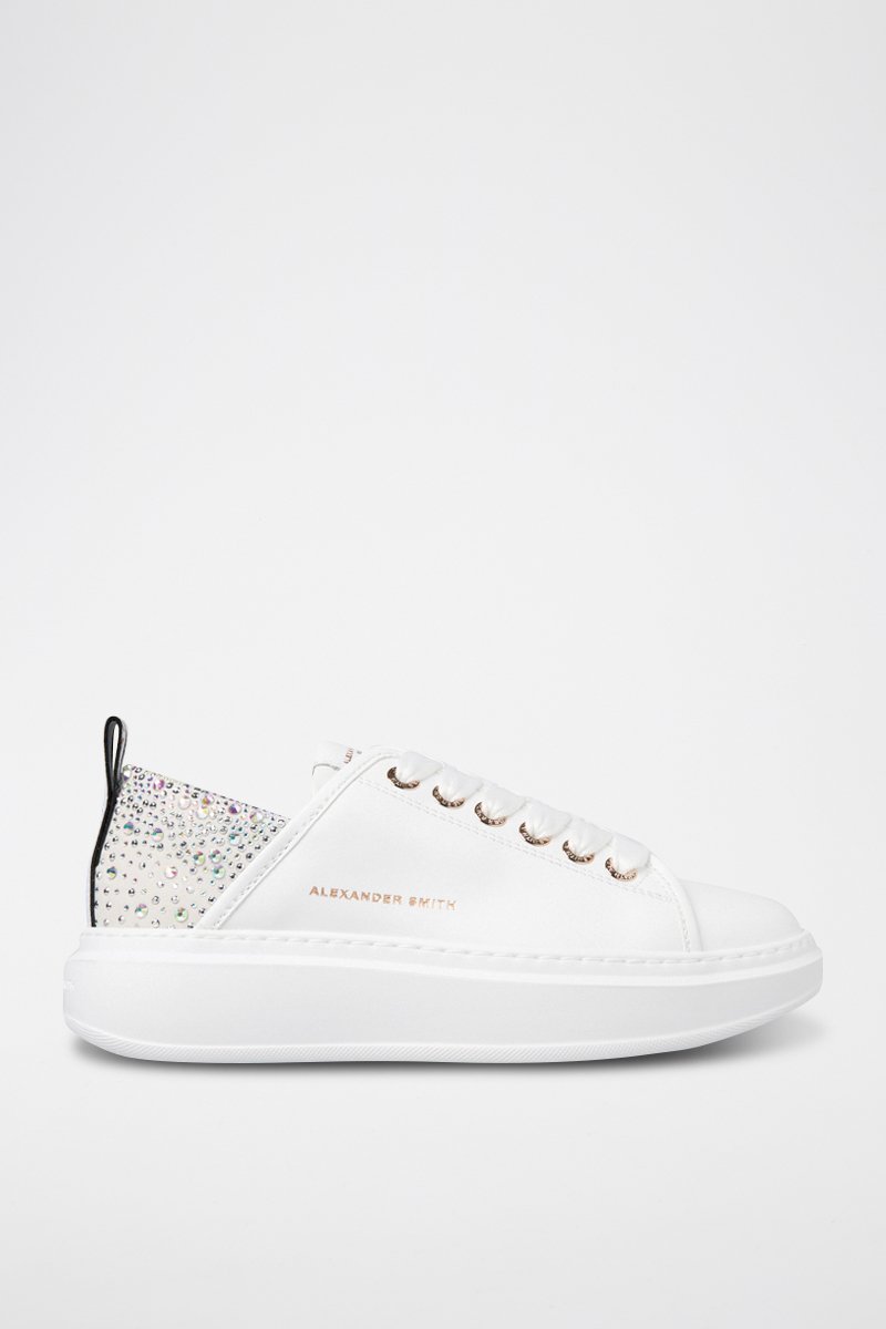 Baskets plateformes en cuir Wembley - Blanc et bleu