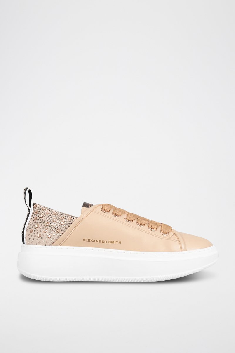 Strass et empiècement à motifs à rayures et logo à l’arrière.