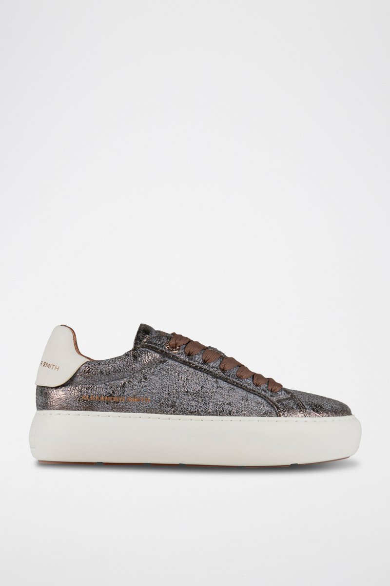 Baskets plateformes en cuir - Marron et argenté