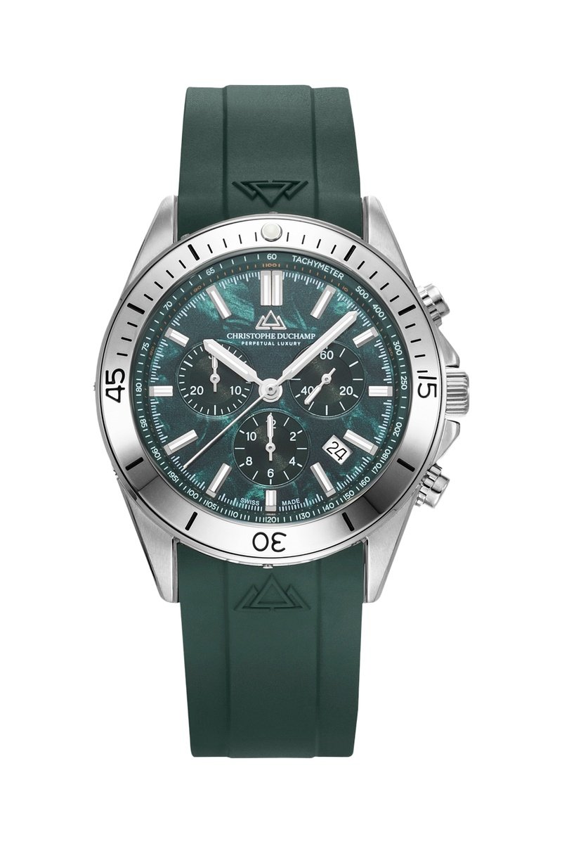 Montre à quartz en acier et bracelet - Chronographe - Vert et argenté