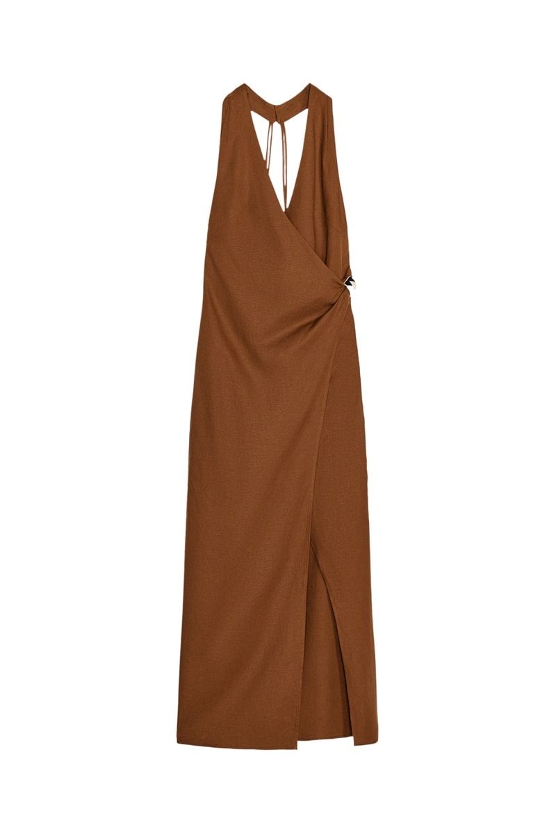Robe portefeuille en lin - Marron