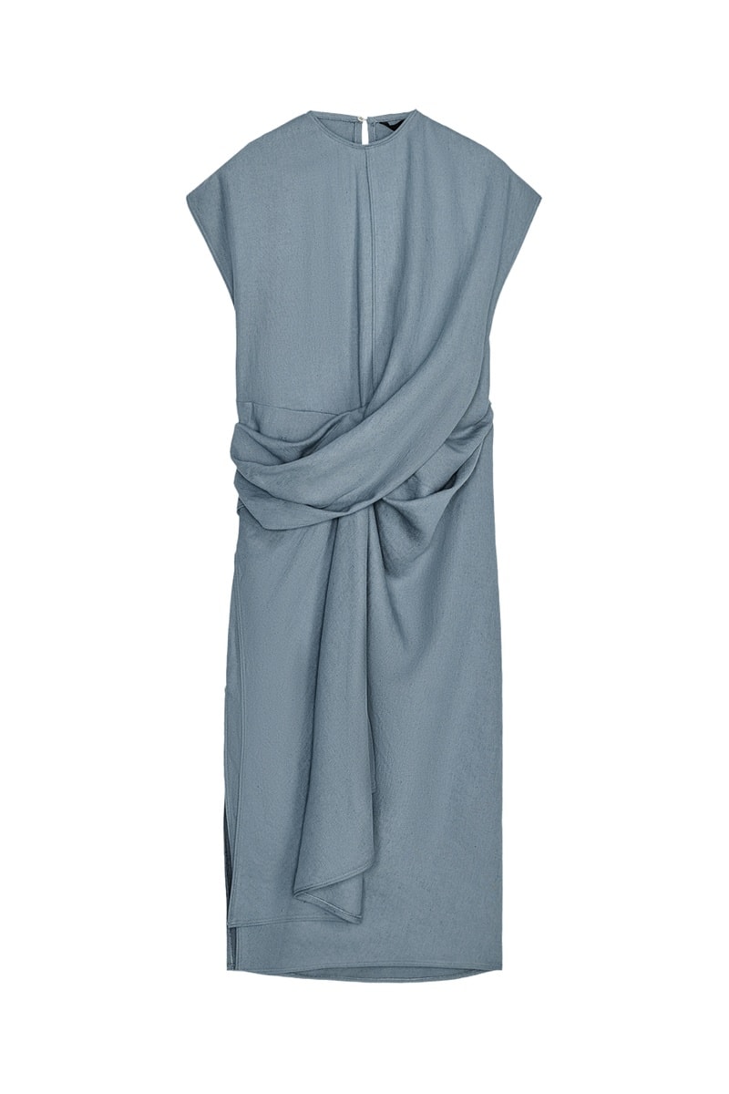 Robe drapée en lin mélangé.