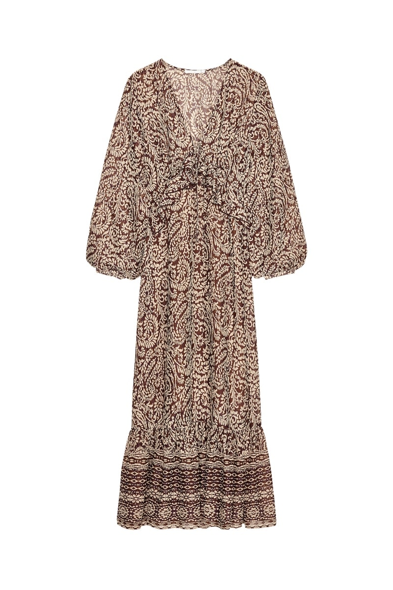 Robe longue - Marron foncé et beige