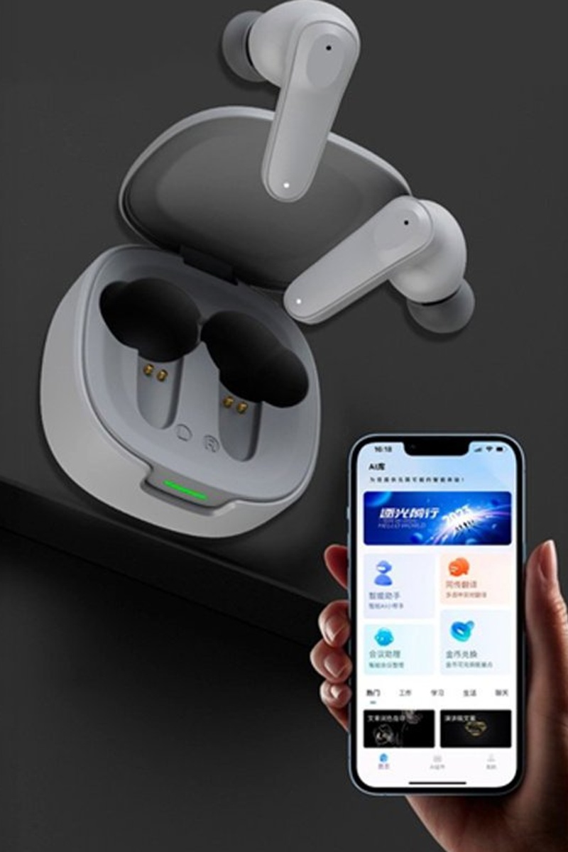 Ecouteurs sans fil avec traducteur et enregistrement.