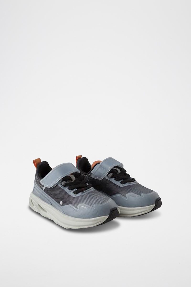 Fermeture à lacets et par scratch.