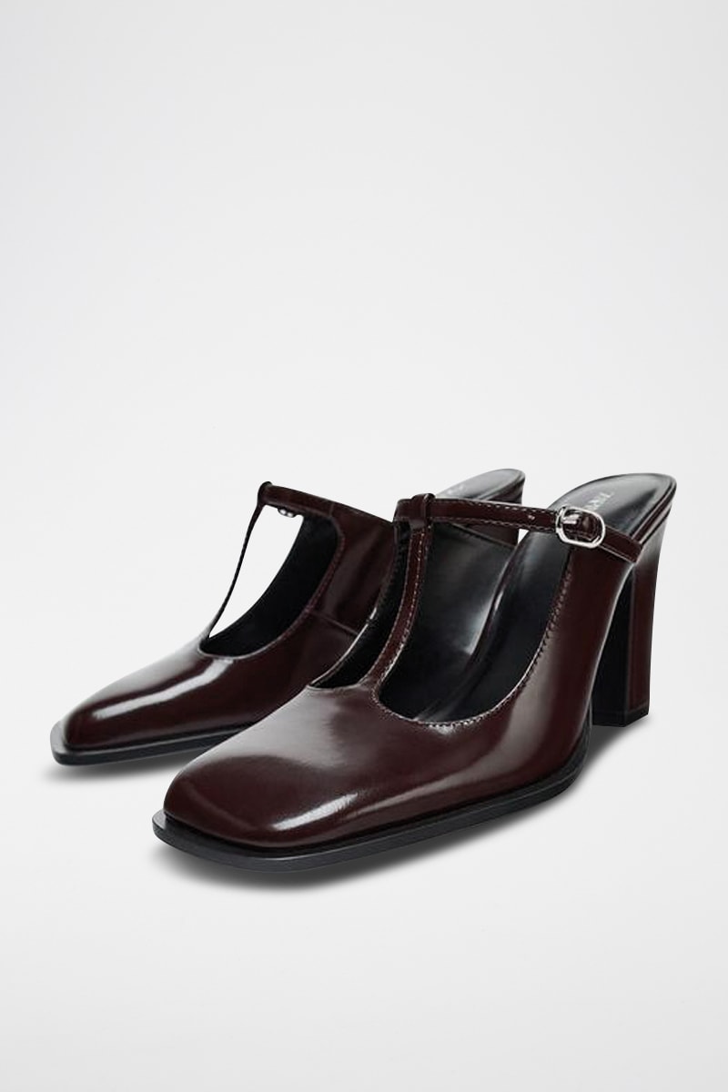 Mules à talons en cuir - Marron foncé