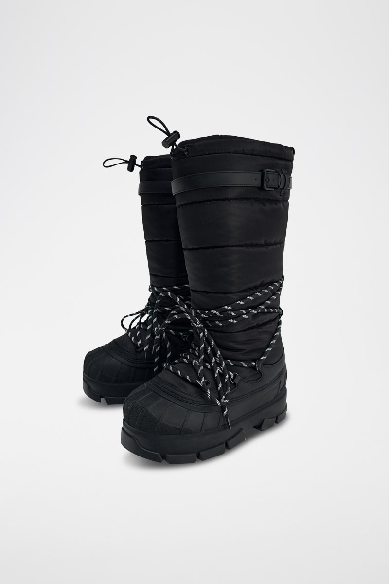 Fermeture par liens de serrage avec barillet à l’ouverture et à lacets devant.
