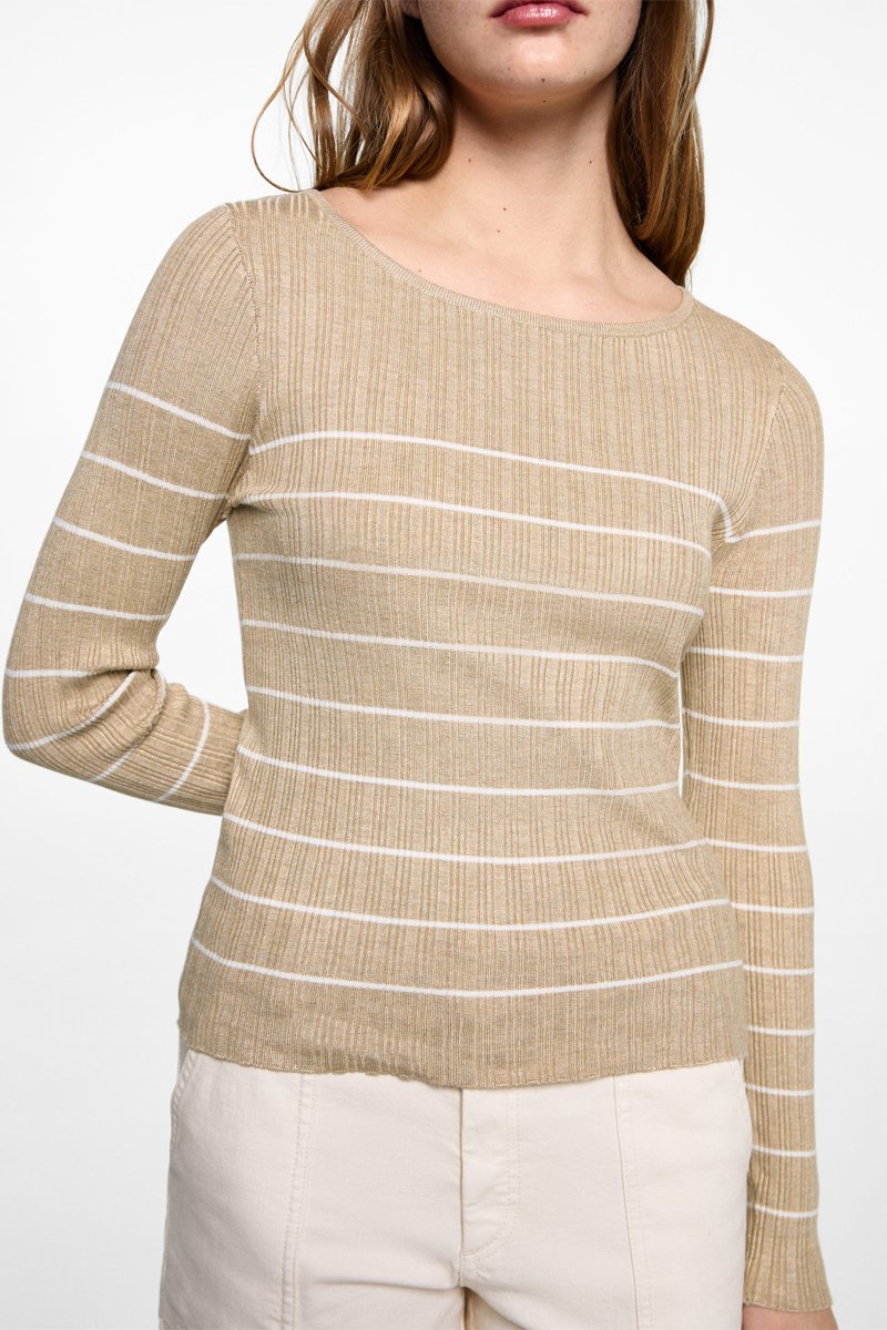 Pull-over côtelé à rayures - Sable