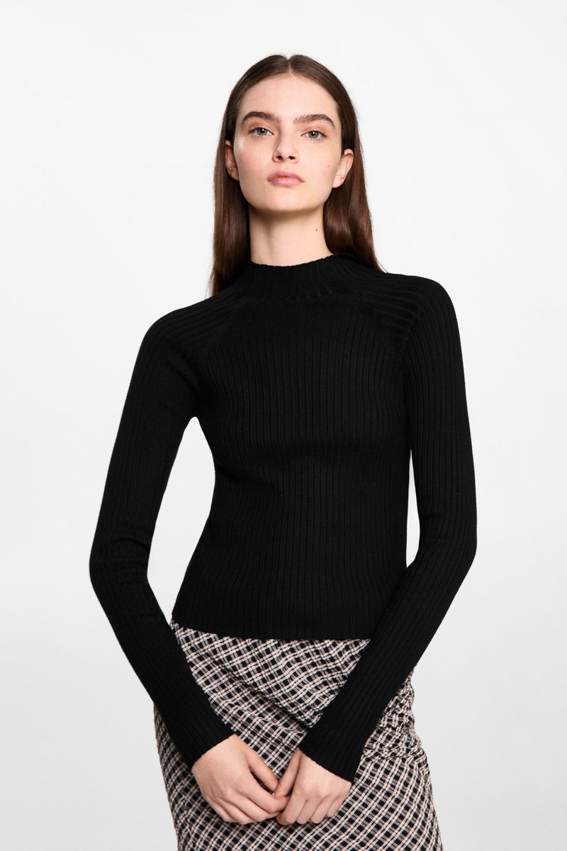 Pull-over à col montant en maille côtelée.