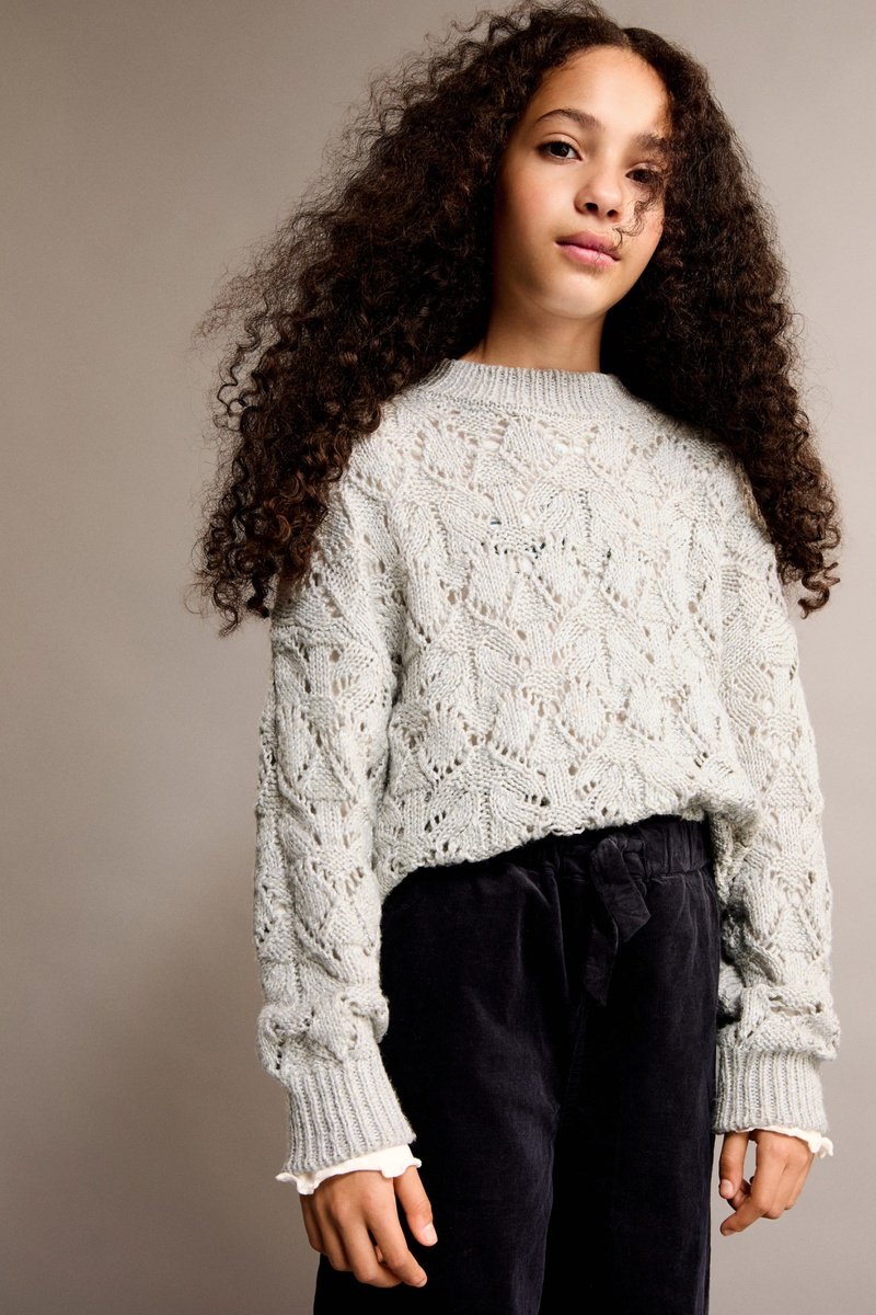 Pull-over maille ajourée Lurex - Gris clair chiné