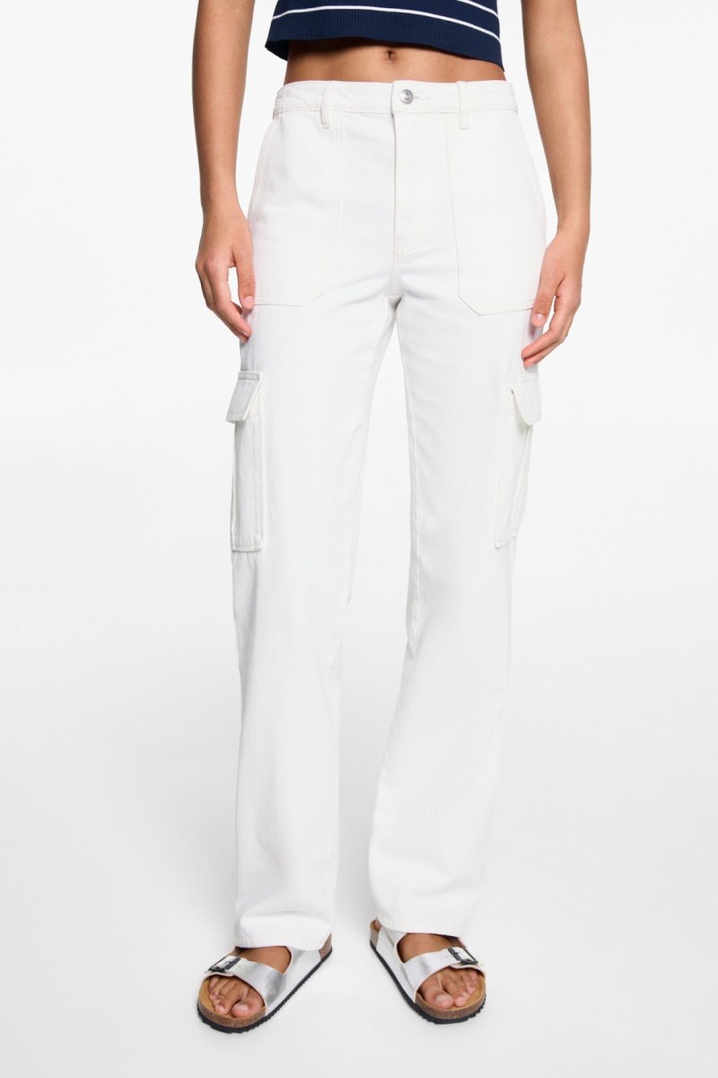 Jean droit style cargo - Blanc cassé