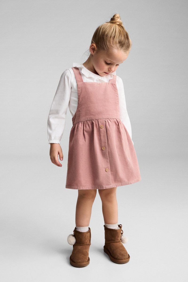 Robe chasuble velours milleraies boutons - Rose