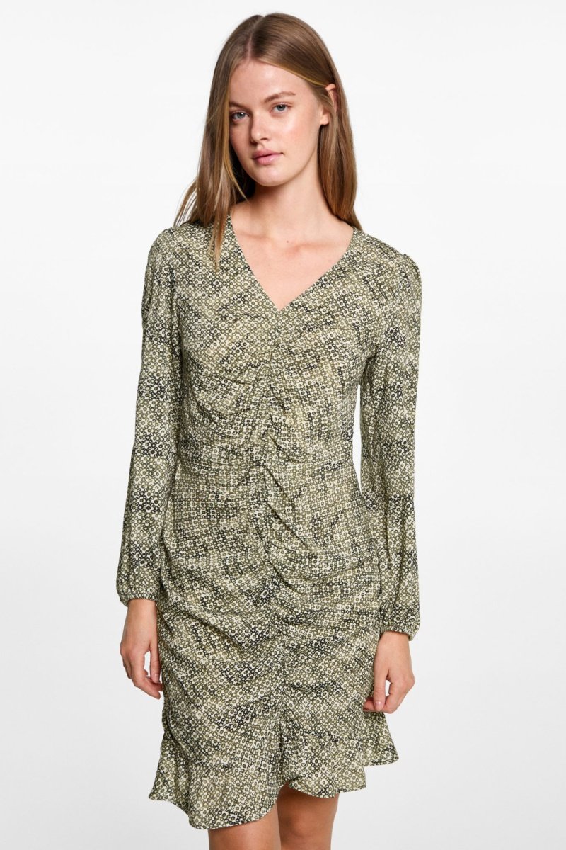 Robe à fleurs détail froncé - Kaki