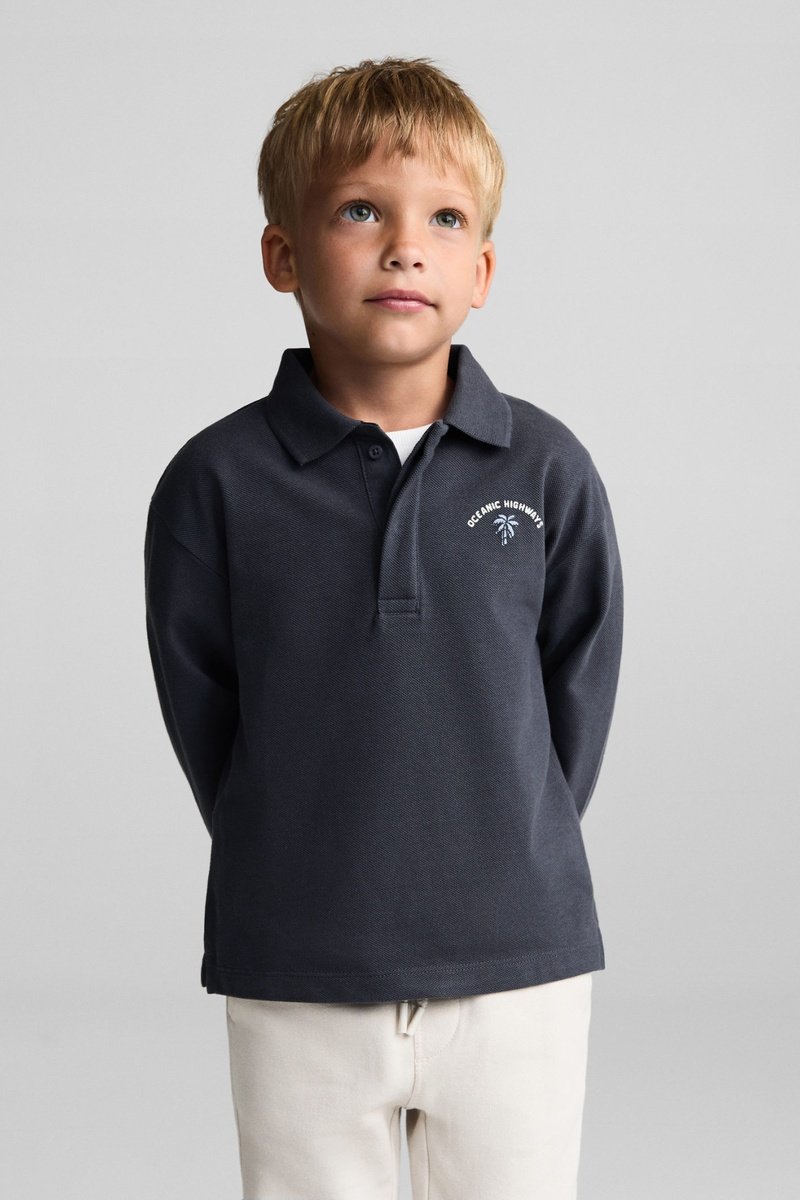 Polo coton imprimé - Gris foncé