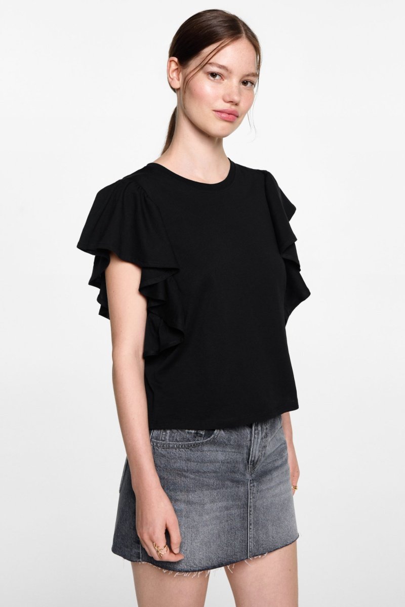 T-shirt en coton à volants - Noir
