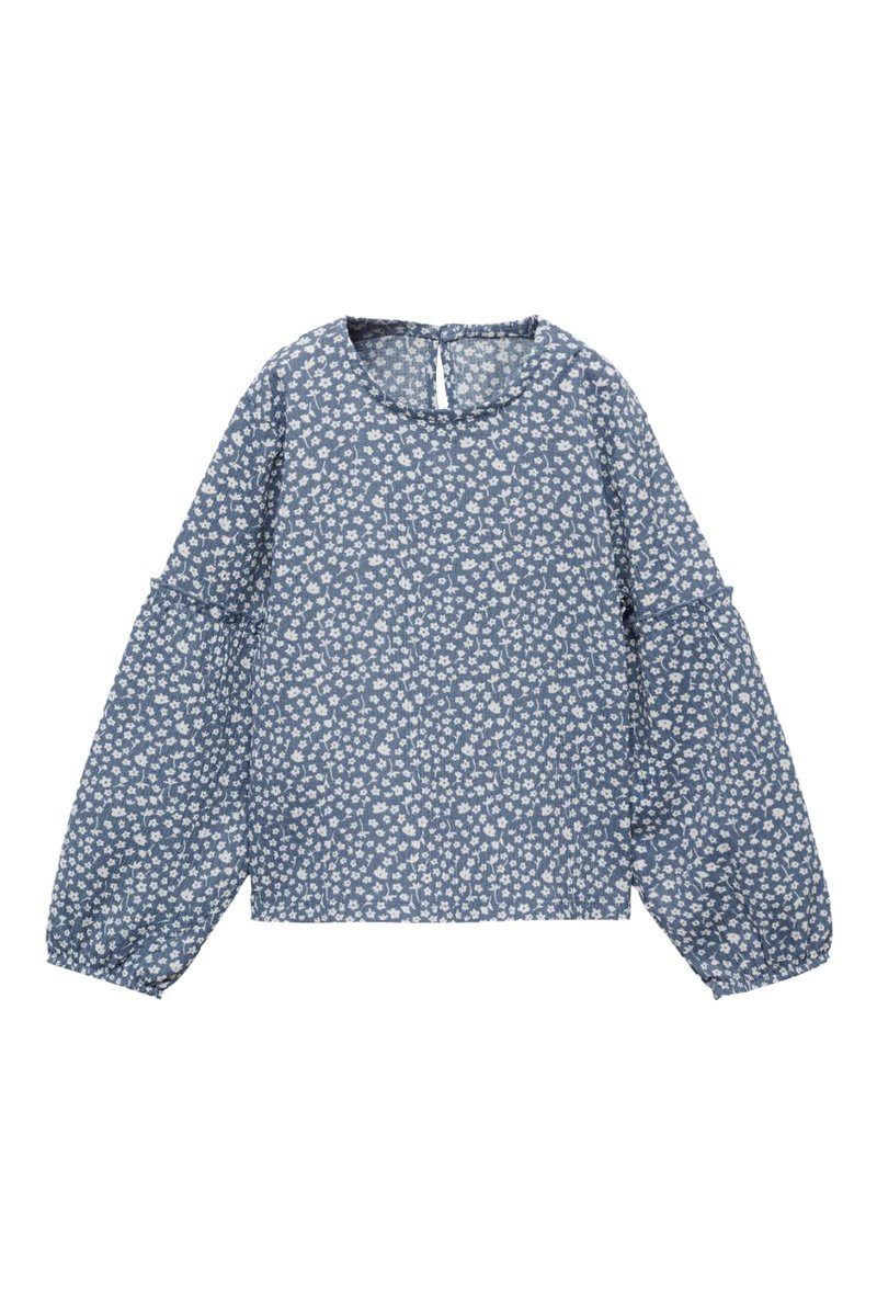 T-shirt manches longues fleurs - Bleu